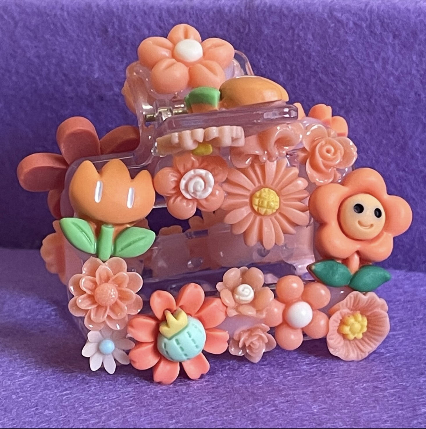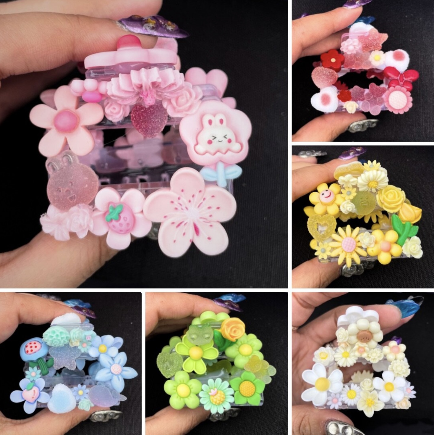 Mini hair claws that pack the maximalist punch! Available in a variety of monochromatic colorways. Uniquely hand-decorated, no two claws look exactly the same